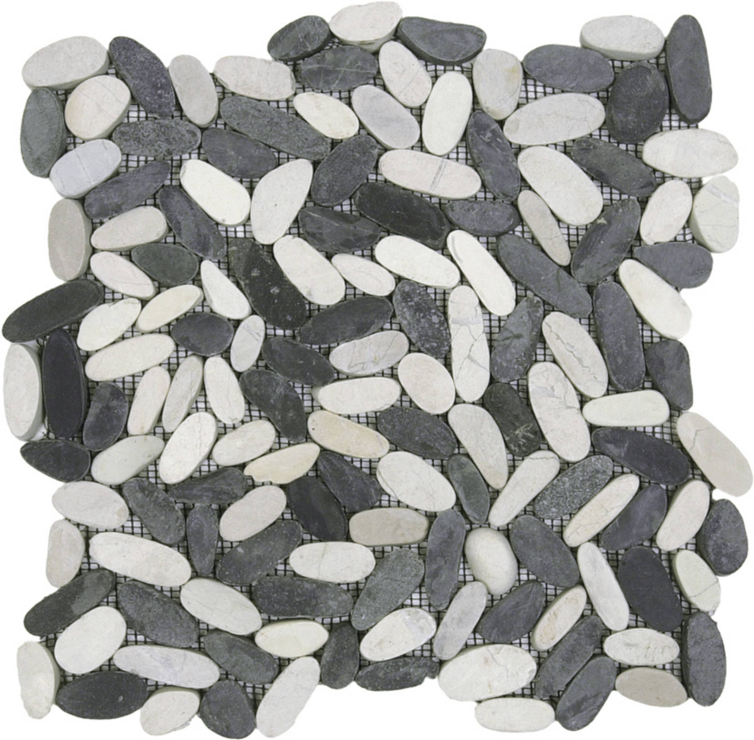 Mix White/Black Sliced Matte Pebble Interlocking Mosaic